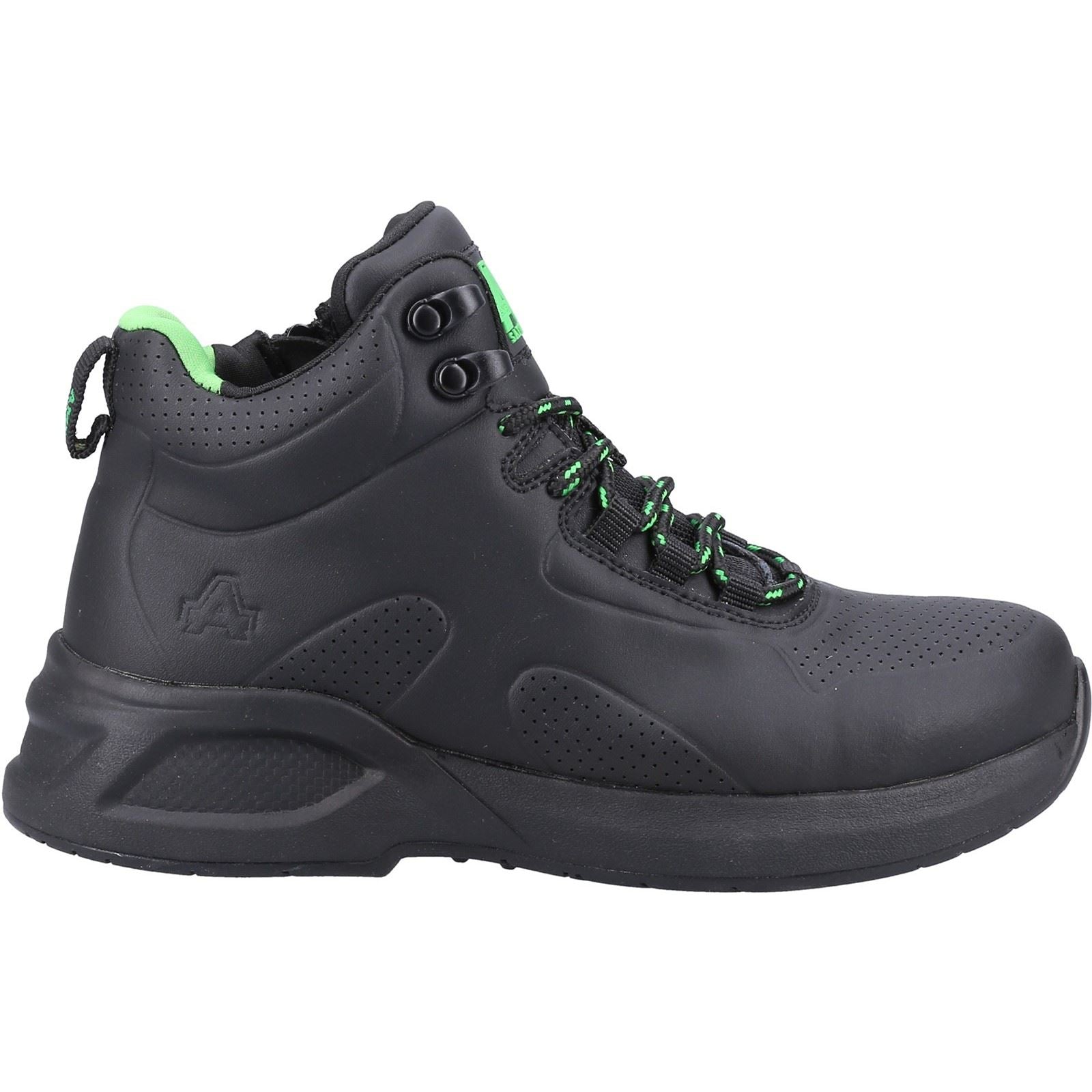 The AS611 Willow is a womens safety boot with an upper made from 57% recycled leather. Its safety features include a steel toe cap and an anti-penetration non-metallic midsole.
