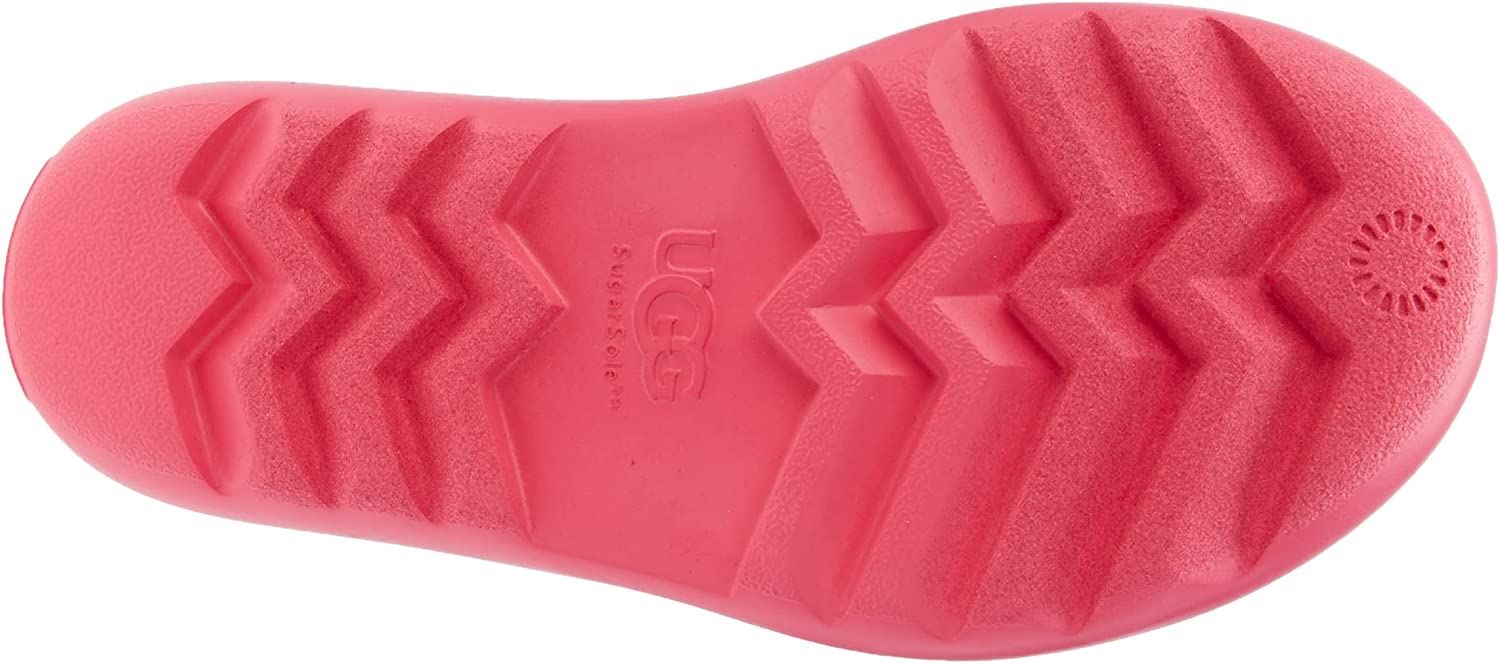 The Mini Slide makes it easy to stay stylish on the go. Its upper, made from 100% recycled polyester fibers, features a great-looking, oversized logo. A foam footbed, padded foam upper, and an ultra-lightweight outsole offer soft-feeling wear. Style them with a shirt dress you love. The outsole of this product is either a SugarSole outsole, which is a responsible compound using sugarcane foam that allows us to reduce dependency on fossil fuels by replacing petroleum-based ethylene, or a Treadlite by UGG outsole.